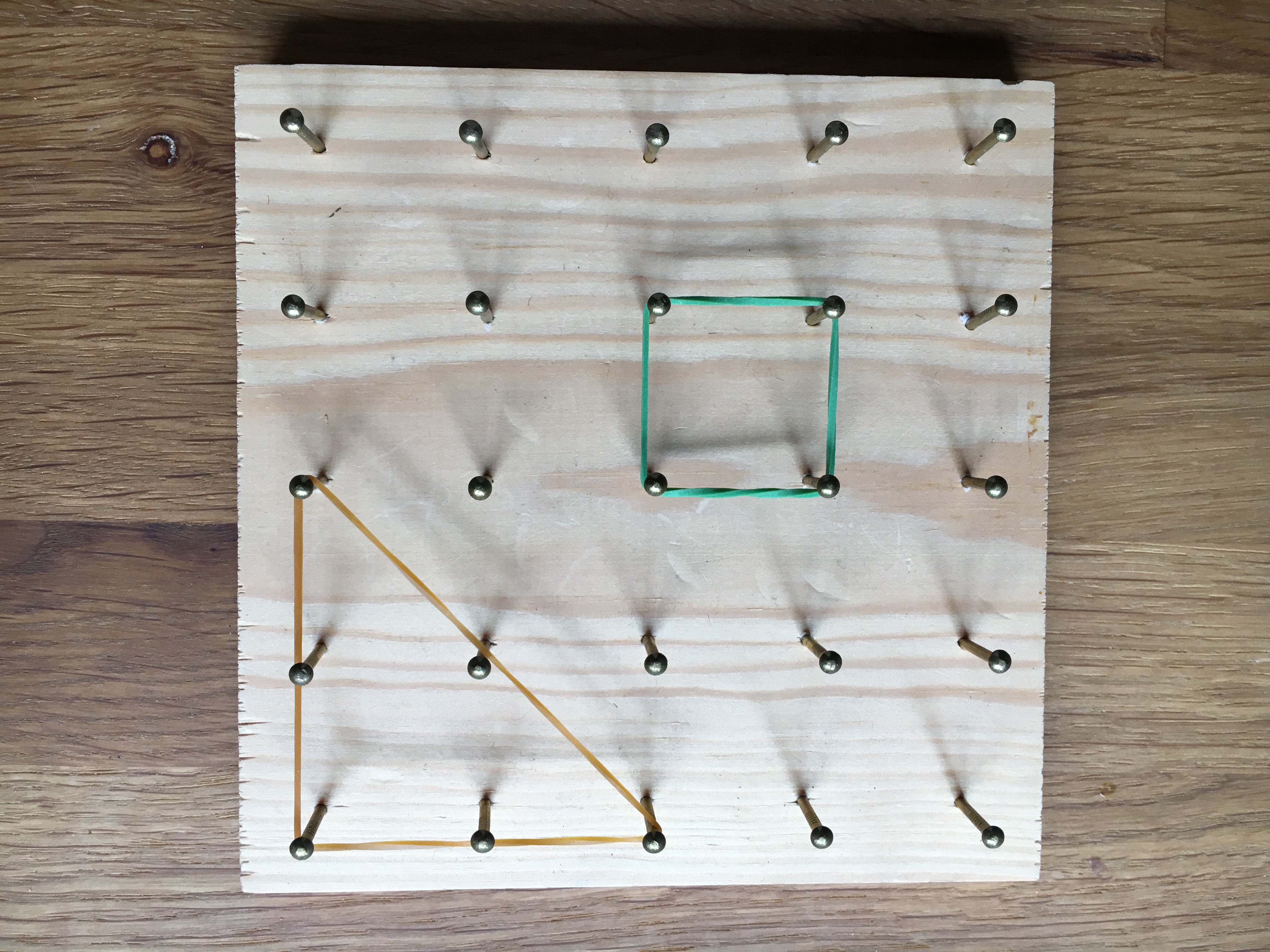 Vidare utvecklades uppgiften till att de fick rita en figur på sitt papper och sedan försöka bygga den på geobrädet.