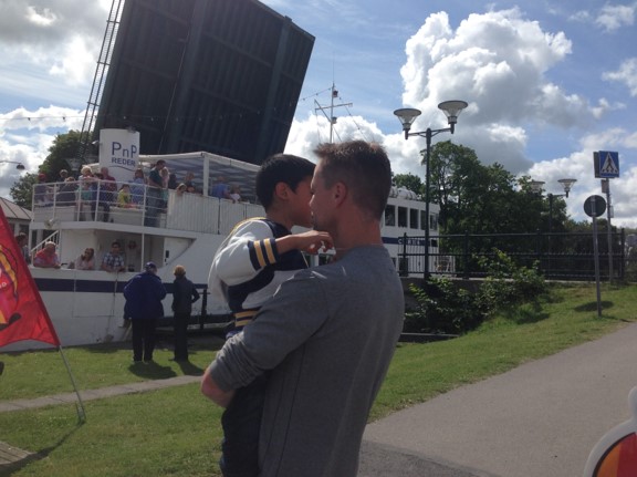 Nu har vi kommit till Borenshult och efter det att vi har passerat rullbron är det dags att börja slussa. I Borenshult finns fem slussar i rad i en sk slusstrappa. Dom kallas för minnets slussar.