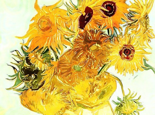 Vincent flyttade till Paris och umgicks mycket med sin bror. Det blev en viktig tid. I konsthandeln där brodern arbetade blev Vincent van Gogh vän med flera målare. Men de var lite rädda för honom för att han hade ett så häftigt humör. Alla dessa känslor ställde till det för honom, men det var också känslorna som gjorde hans tavlor så speciella. Vincent van Gogh älskade att måla solrosor. Han har berättat att han blev betagen av att måla det magiska gula. Han arbetade med dem varje morgon från soluppgång eftersom de slokar så fort och man måste göra färdigt hela stycket i ett svep. Varje solros är noga studerad och har något personligt över sig.