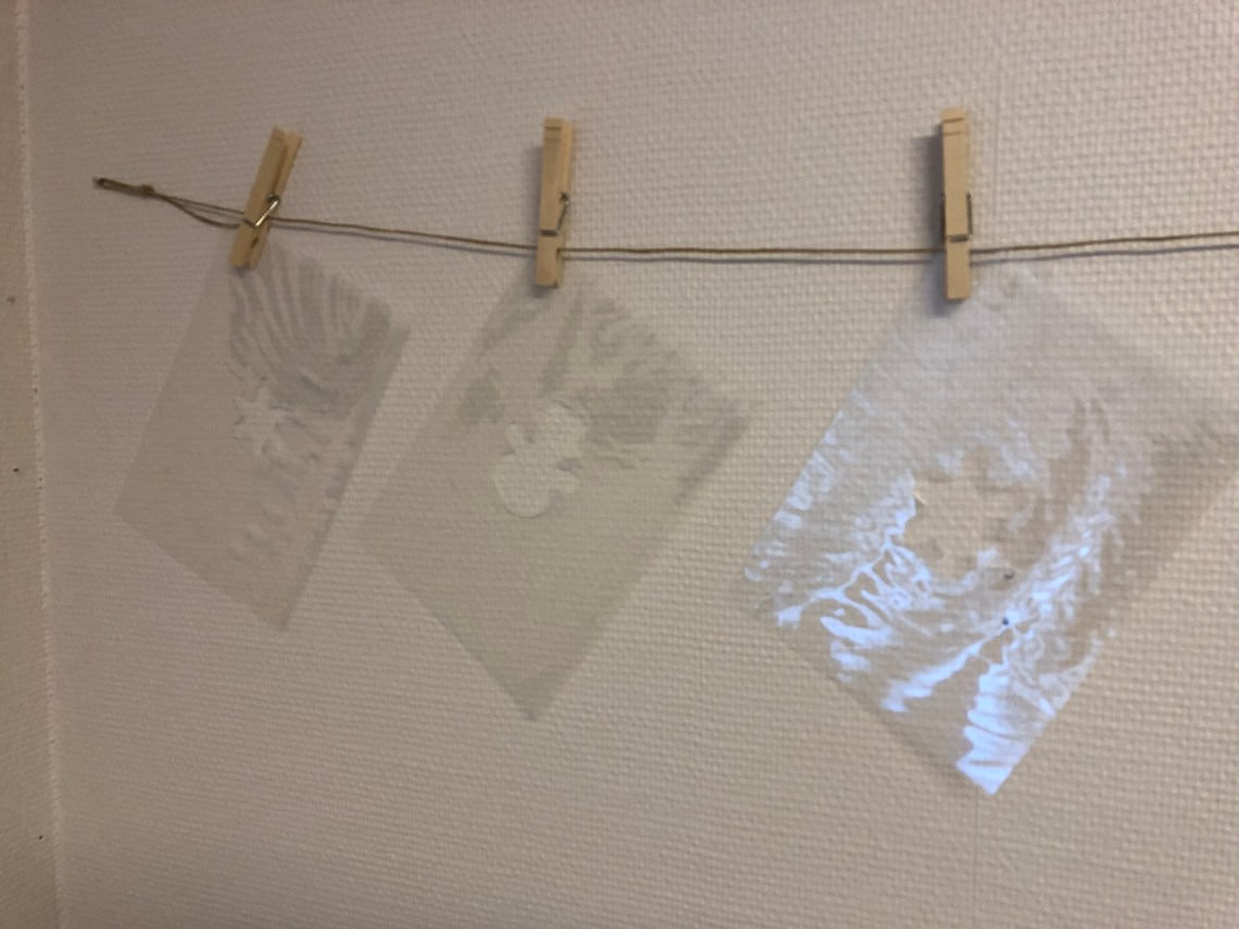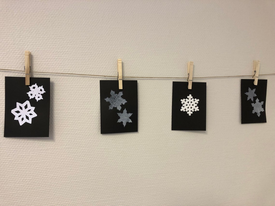 Den andra var att klippa snökristaller av vitt papper och klistra upp svart papper.
