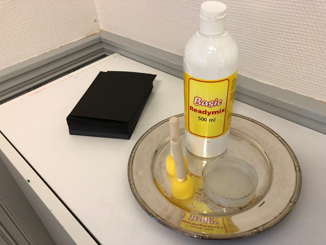 Den första var att stöppla snökristaller med schabloner på ett svart papper med vit färg.