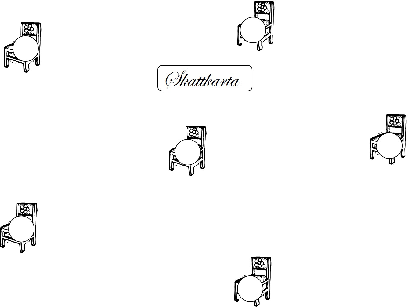 Kartan visar sex olika platser i rummet.
