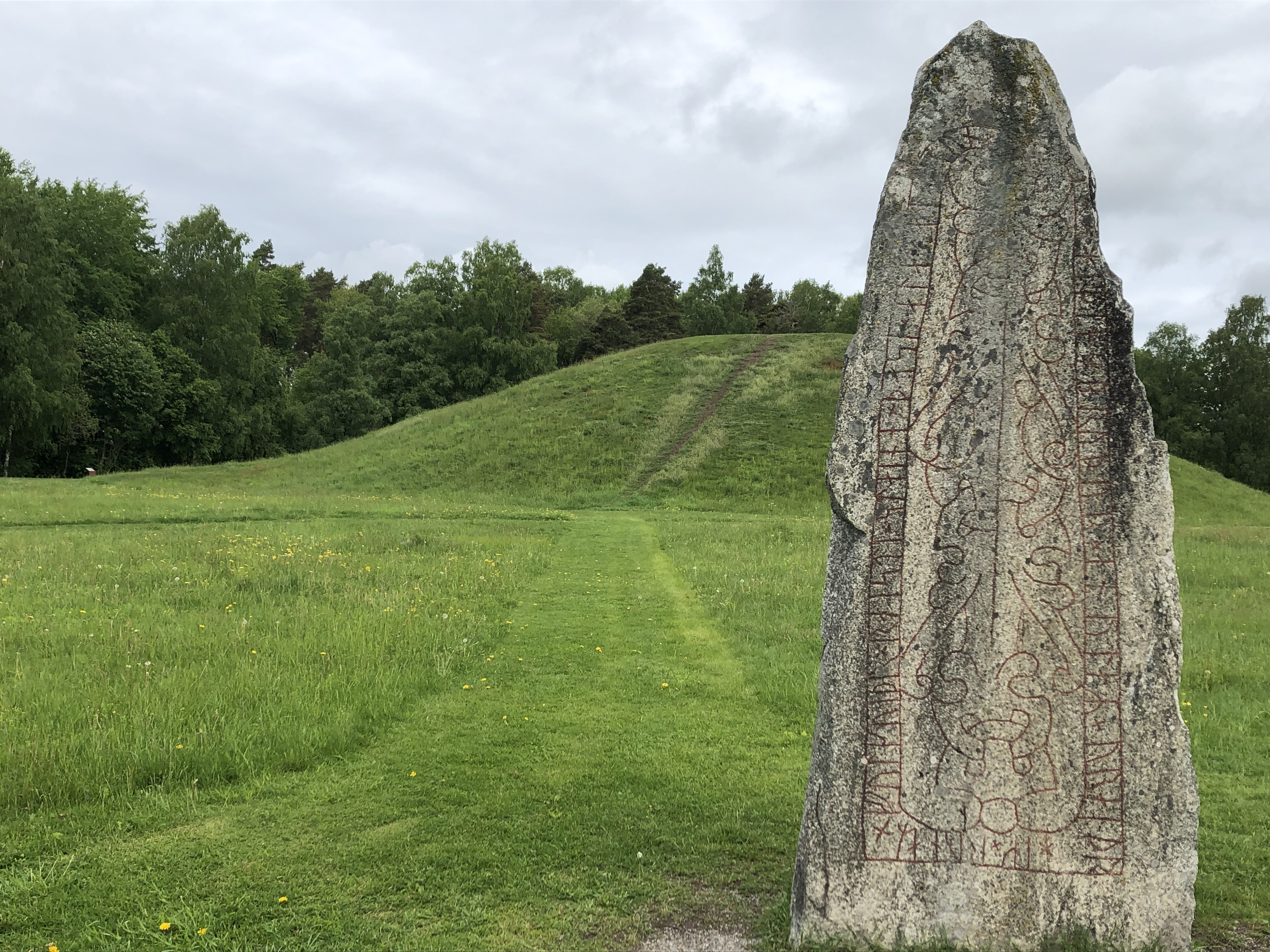 Säkert är i alla fall att denna gravhög är mäktig med sina 9 meter. I närheten av högen finns en runsten med inskriptionen ”Folkvid reste alla dessa stenar efter sin son Heden, Anunds broder. Vred högg runorna.”