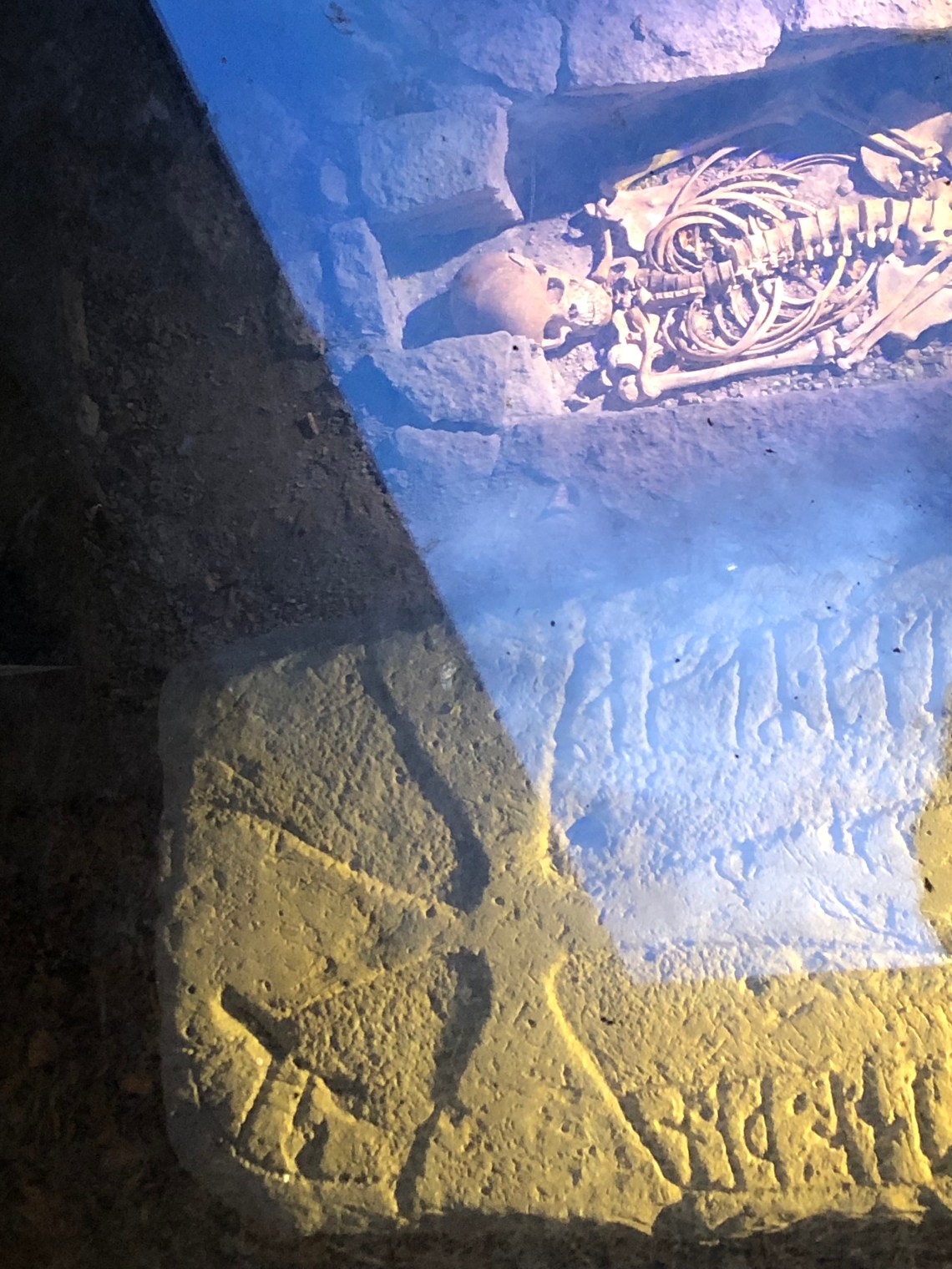 Vid utgrävningar 2007 fann man en kristen man som begravts där någon gång mellan år 780-970, alltså under vikingatid. Till detta kan läggas att Ansgar kom till Sverige runt år 830, då till Birka.. Kristendomen kom alltså tidigare till Västergötland, men som guiden sa ”Ansgar hade en bättre PR-man”…