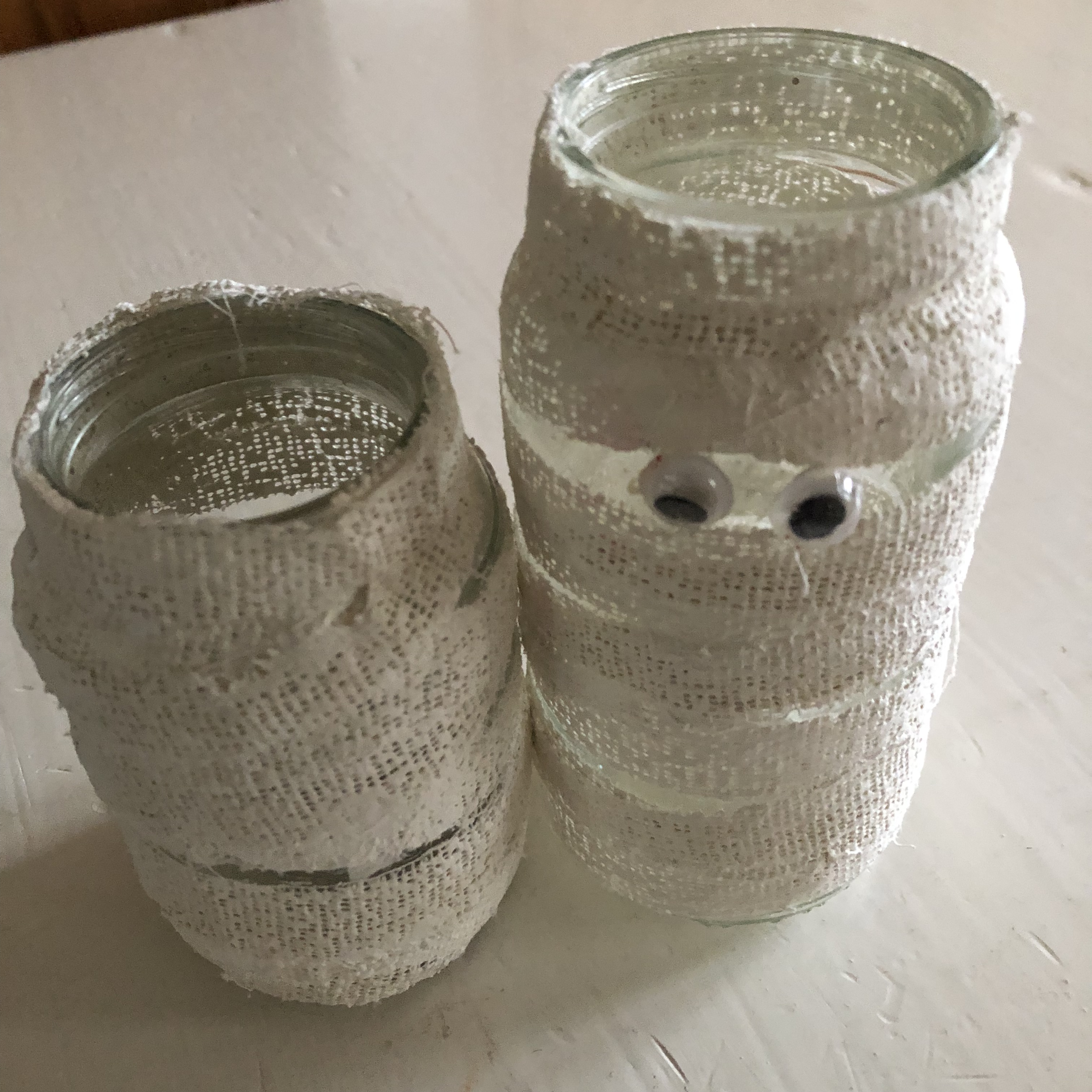 På bilden kan man så här i halloween-tider göra en egen mumielykta.
