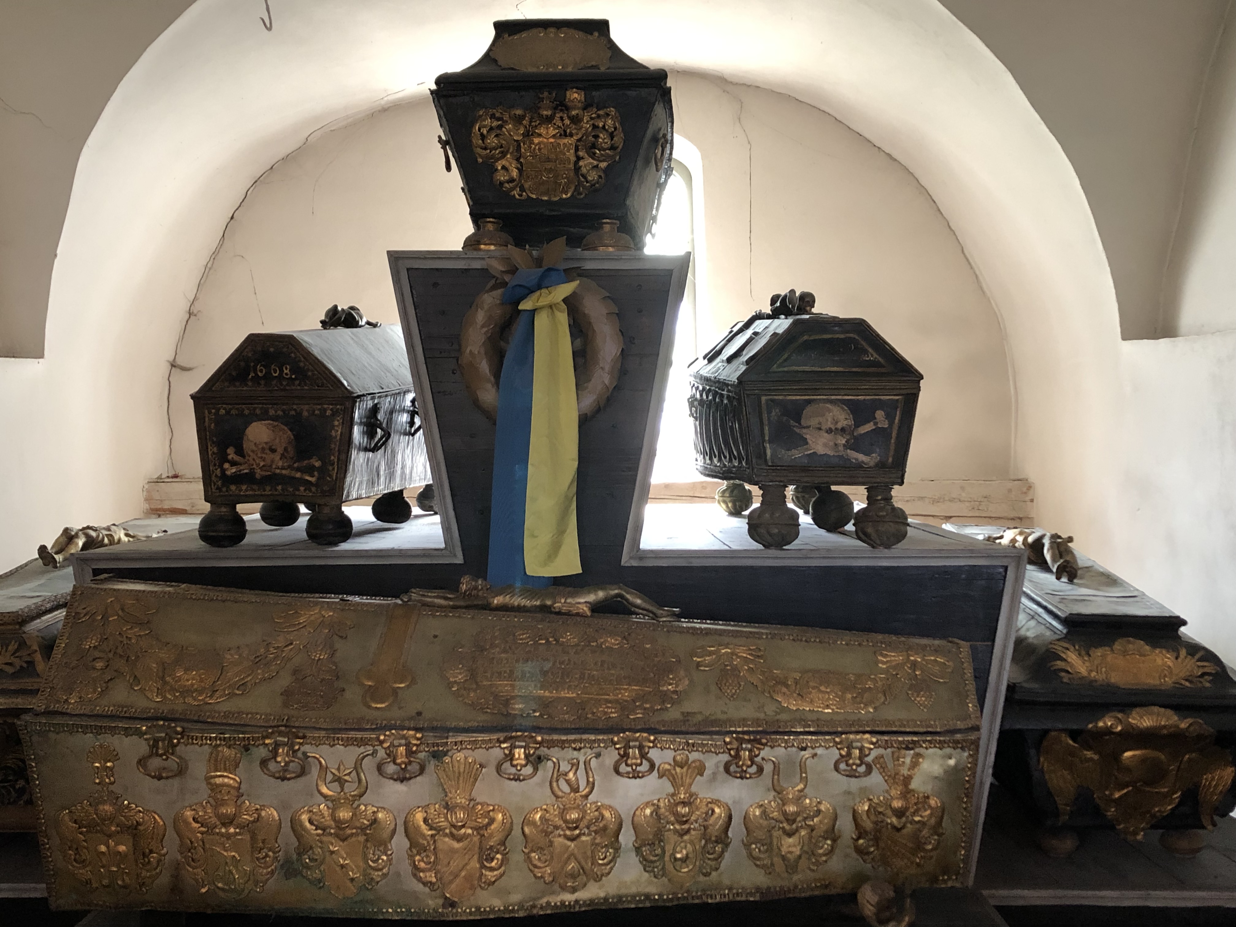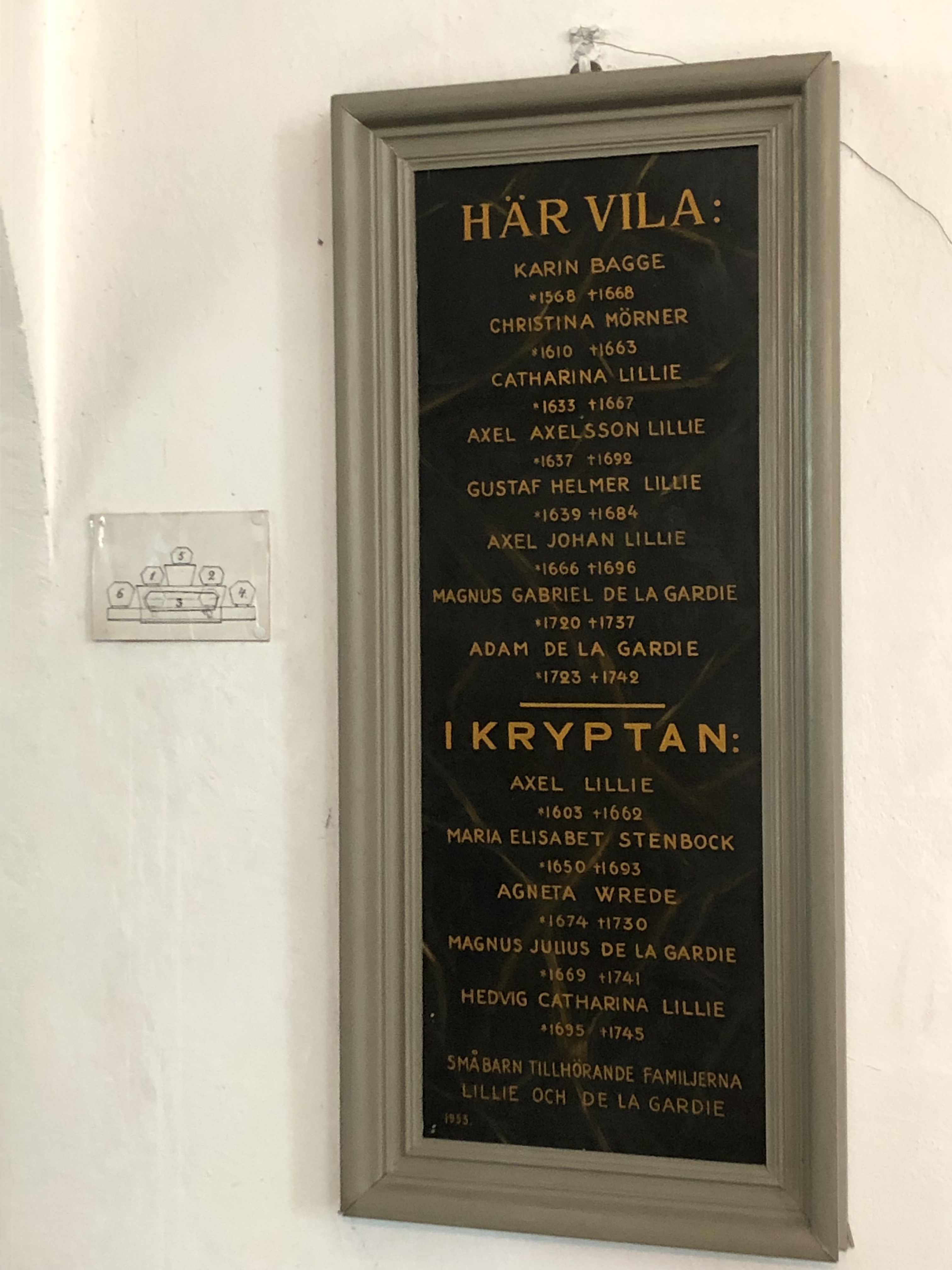 Maria Elisabet ligger begravd i Kimstad kyrka nere i kryptan under detta kor.