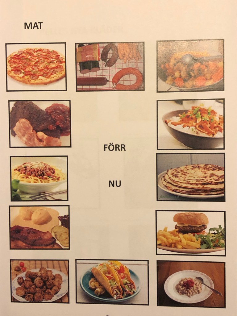 Jag lät eleverna fundera på vilken mat som fanns förr i tiden och vilken mat som är ny för oss.