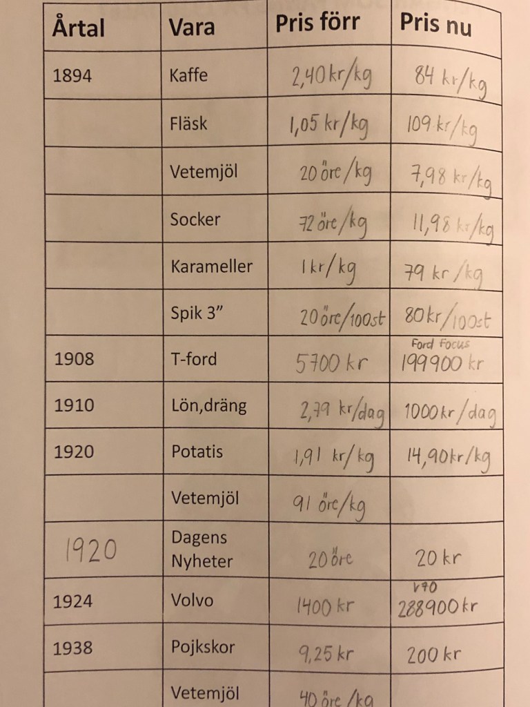 I boken om barnen i Bullerbyn går Lisa och Anna till handelsboden. Vi roade oss med att jämföra lite olika priser.
