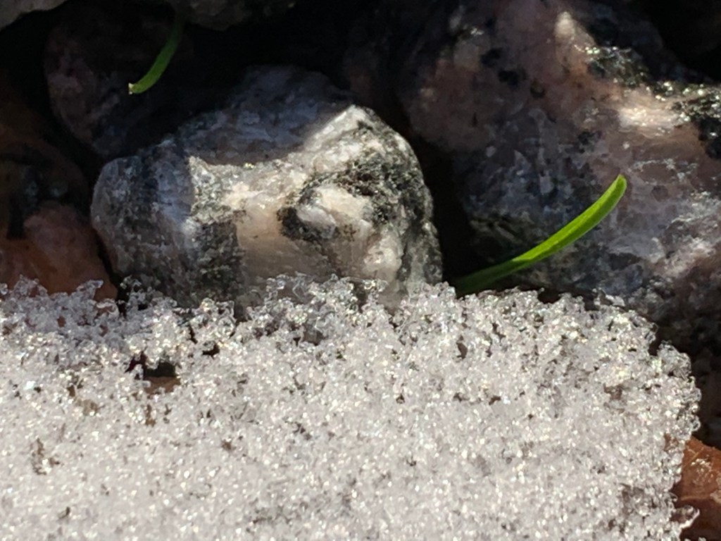Om någon är sugen passar en stirradikt bra här. Allt som behövs är snö. Eftersom snö är gjort av vattenmolekyler fungerar också iskristallerna som prismor och det är därför snön gnistrar i solen.