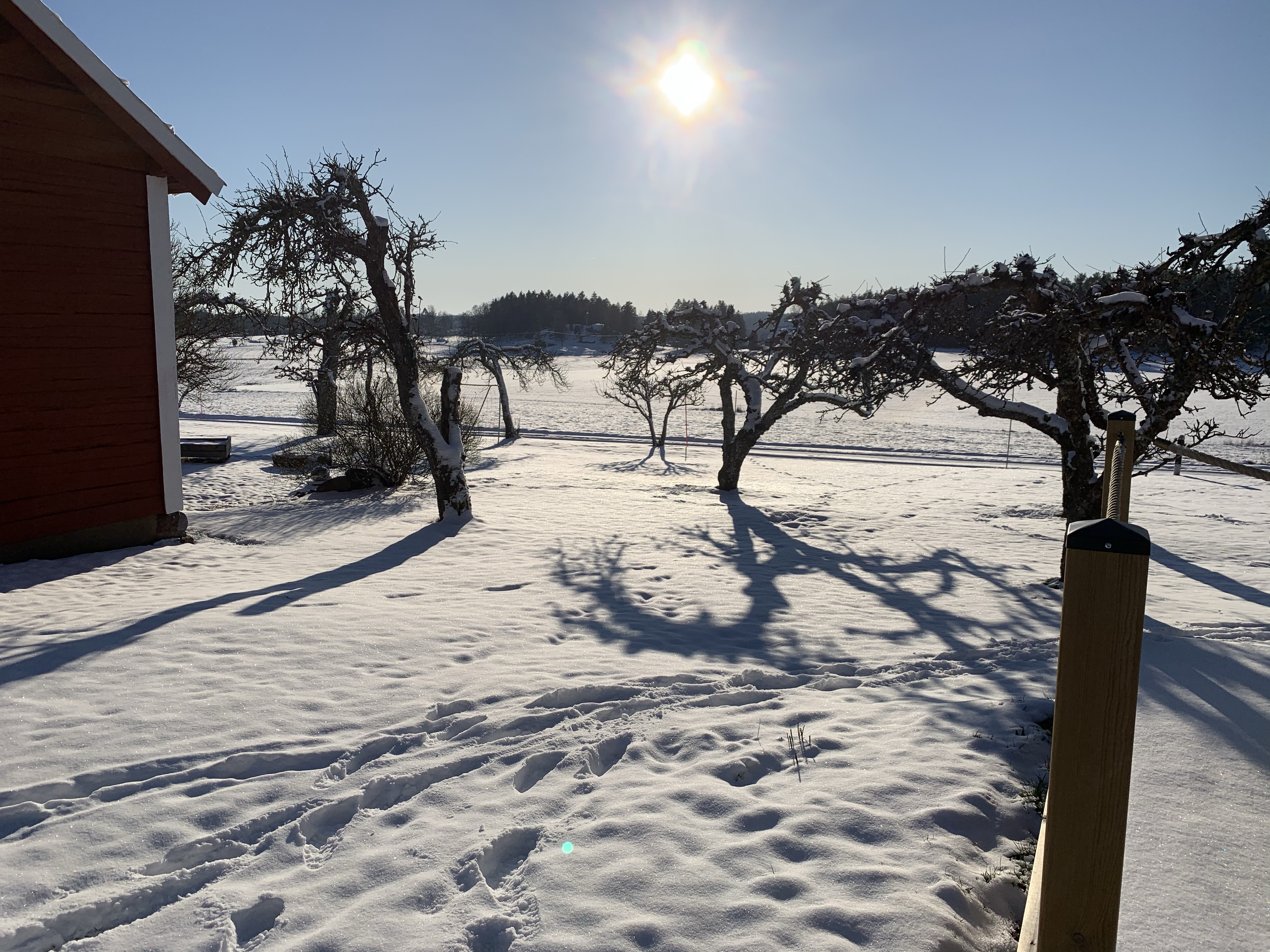 Snön gnistrar i solen.