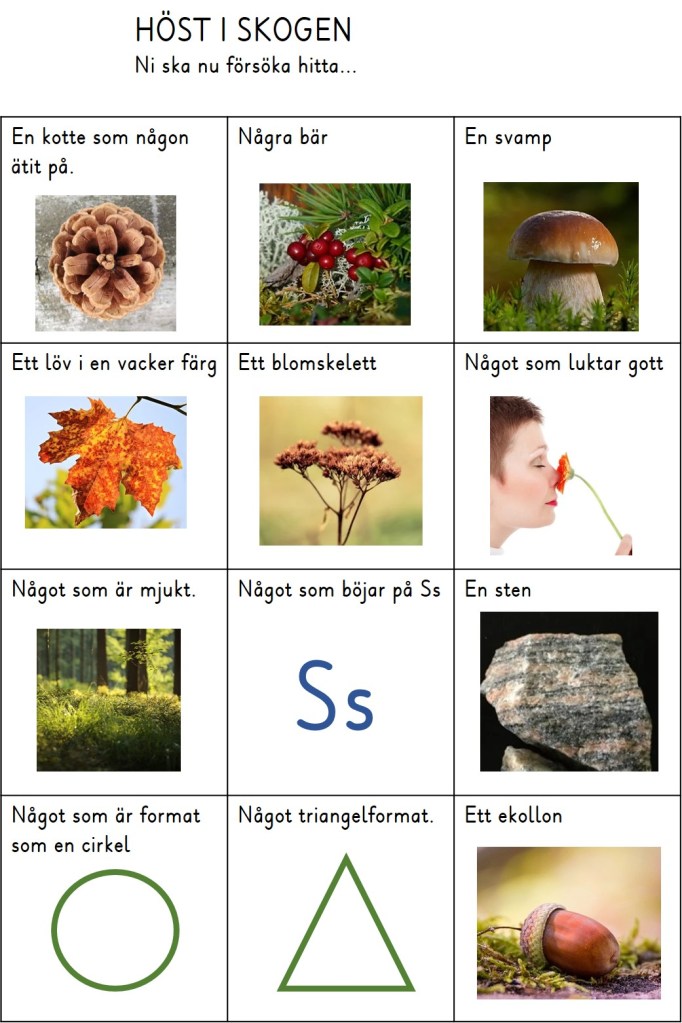 Det här naturskoletillfället får handla om hösten i skogen, bär, svampar och färger.