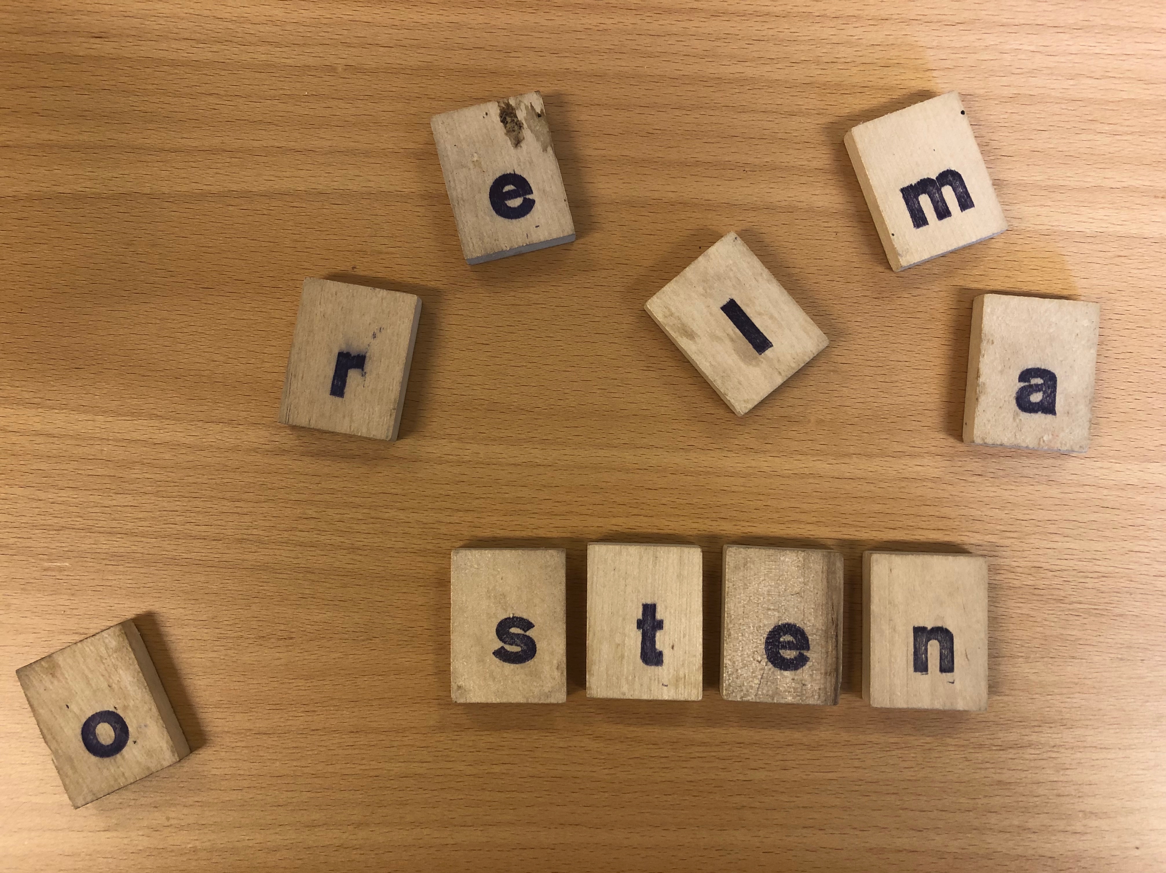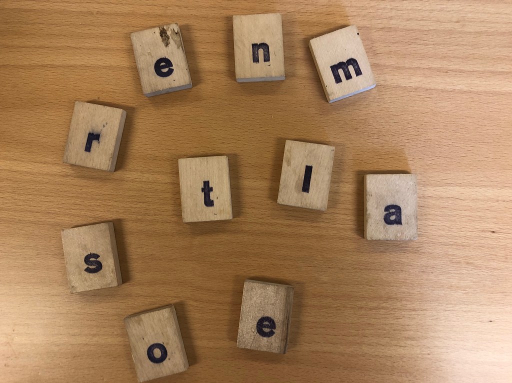 Vi, i arbetslaget, köpte in multilink med bokstäver på som vi använde. Men det går ju också alldeles utmärkt med andra bokstavslappar eller klotsar.