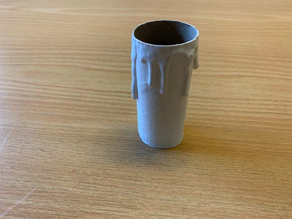 De flygande lyktorna gjorde vi med toarullar, limpistol och vit färg.