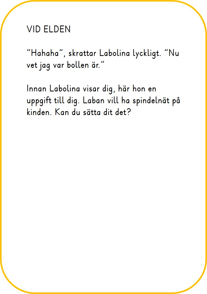 Vid elden var det sista stoppet och där fick barnen sätta ett spindelnät på Labans kind och sedan ta del av skatten.