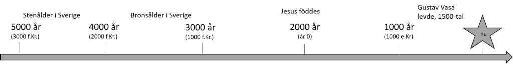 Jag läste lite information om varje uppfinning och de fick placera ut dem på tidslinjen vartefter. nu gällde alltså att gissa hur länge en sak har funnits. Jag har ”förenklat” tidsbegreppen något, men ni ser ju när saken uppfanns också. Vi pratade förstås lite om tidsaxeln först och stoppade in några viktiga händelser.