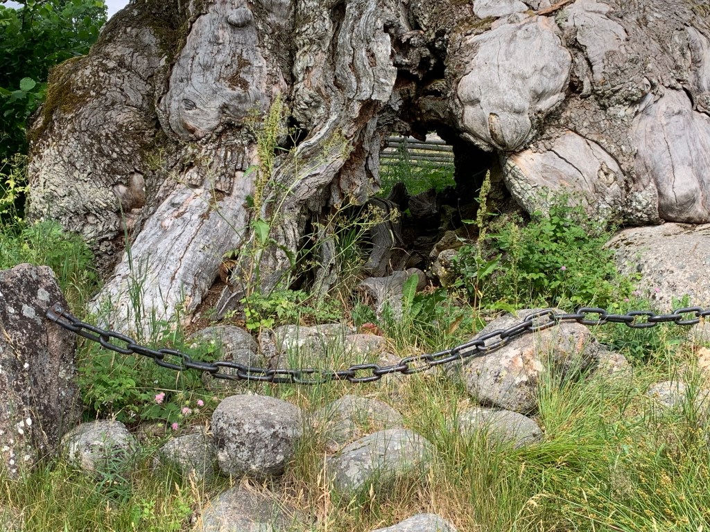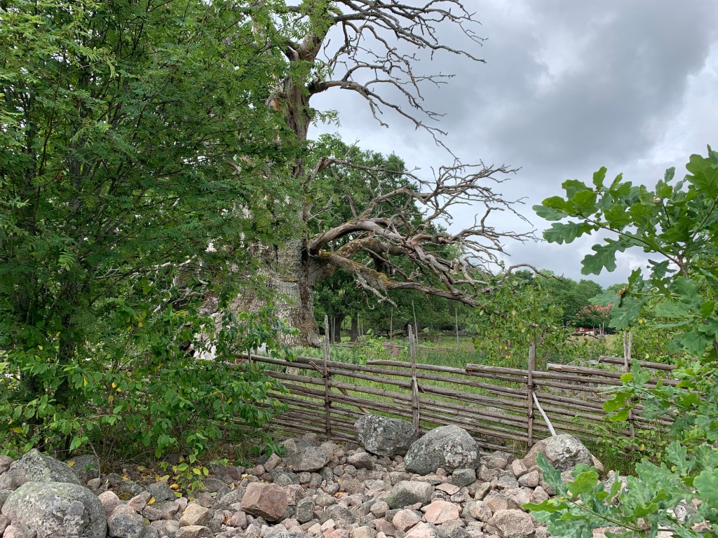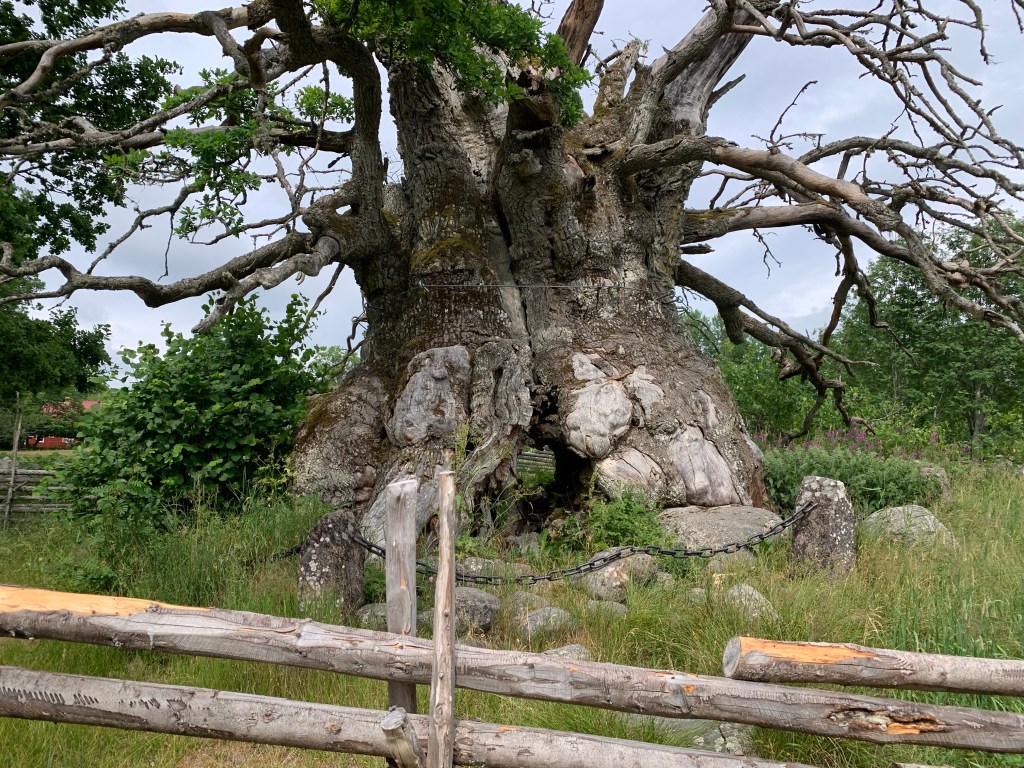 Visst är känslan magisk när vi kliver fram emot denna magnifika ek. Kvilleken är Sveriges äldsta och största. Den är ungefär 14 meter i omkrets och tros vara åtminstone 1000 år. Det betyder att den har rötter från Vikingatid, spirade när heliga Birgitta levde och gav skugga åt Gustav Vasa. Det sägs att Nils Dacke hängde tolv krigsfångar här i eken under 1500-talet.