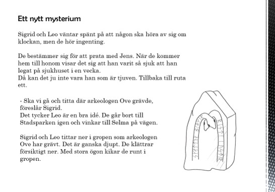 I svenskämnet står Sigrid och Leo inför ett nytt mysterium. Vad är det egentligen som är i gropen?